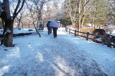道路管理会社「白糸ハイランドウェイ」は12月21日から2月25日までの期間中で18日間、白糸の滝の