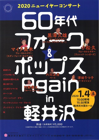軽井沢大賀ホールは1月4日、新春コンサート「60年代フォーク&ポップス Again in