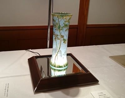 人気の高い、エミール・ガレの作品18点とドームの作品14点を万平ホテルのバンケットホール「ザ・ハッ