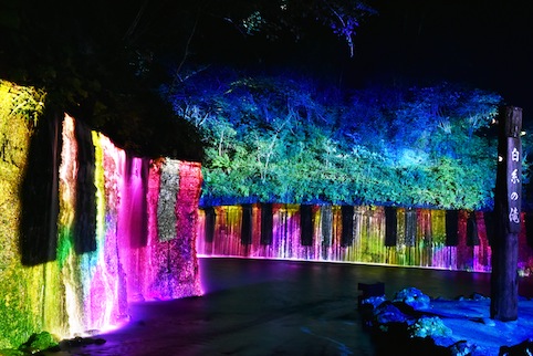 軽井沢の観光名所、白糸の滝が7月27日から8月26日までの毎週金土日曜日に、ライトアップされ、一日