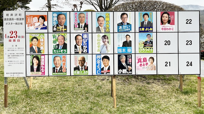 任期満了に伴う軽井沢町議選が4月18日告示され、定数16に対し19人が立候補を届け出た。投票は23