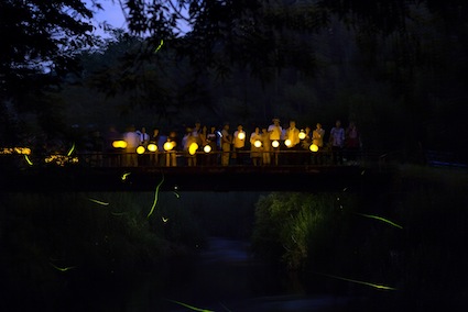 ぽ、ぽ、とホタルが光っては舞う里山を歩く「塩沢村 蛍めぐり」が週末に開催されている。ガイド役の「塩