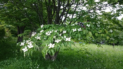 マリン「あ、この花あちこちで見るね。なんて花?」 M記者「ヤマボウシよ。ほら、秋になると赤いサクラ