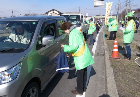 軽井沢警察署は4月6日、春の全国交通安全運動(4/6~15)に合わせ、軽井沢消防署前に交通指導所を