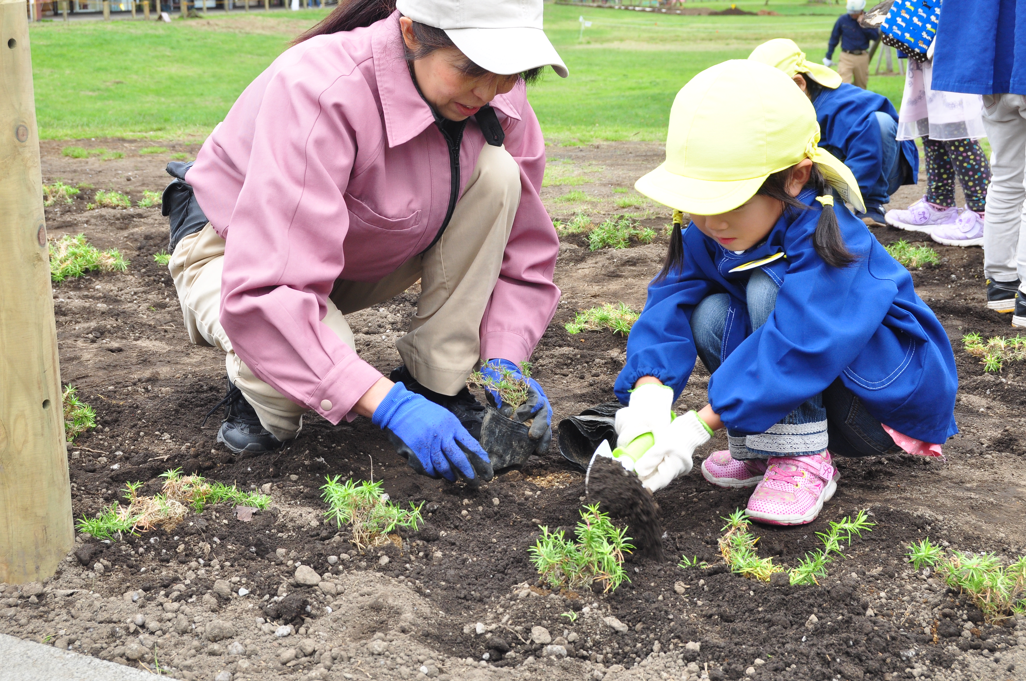 軽井沢・プリンスショッピングプラザのツリーモール芝生の広場で10月13日、芝桜の植栽イベントが行わ