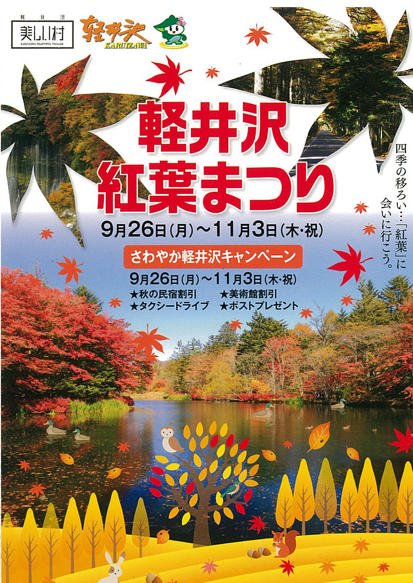 軽井沢紅葉まつり期間中、観光案内所や協賛店に置いてある応募ハガキで応募すると抽選で133人にプレゼ