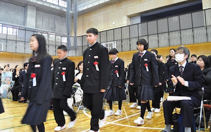 軽井沢町立軽井沢中学校で4月6日、新校舎完成後初めてとなる、平成28年度入学式が行われた。男子75