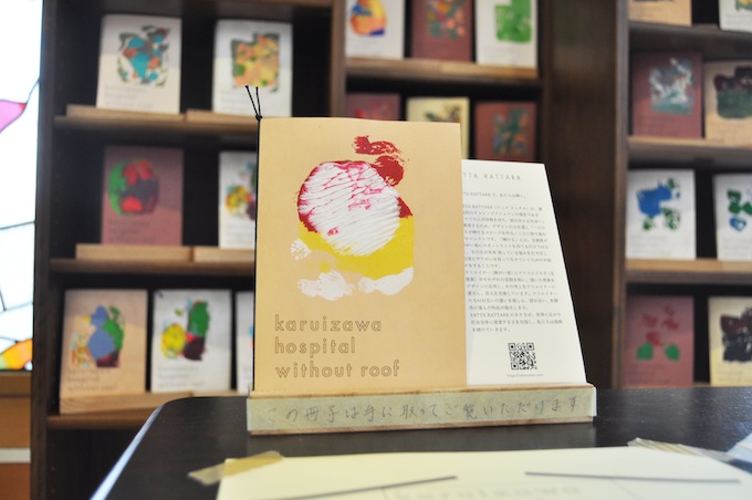 先日、軽井沢病院で配布された世界に一つの「おくすりてちょう」。町内のアトリエ「RATTA RATT