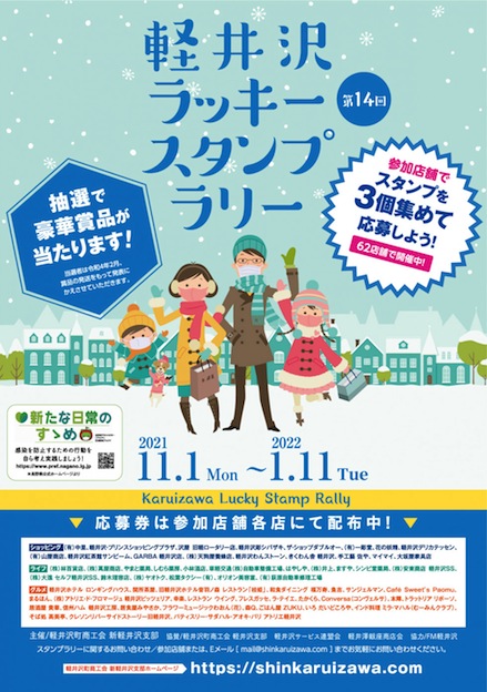 スタンプを3個集めて応募すると、利用券や地元特産物が抽選で当たる「軽井沢ラッキースタンプラリー」(
