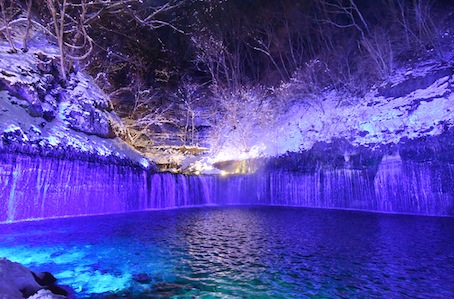 軽井沢の観光名所、白糸の滝で「真冬のライトアップ」が、12月19日から始まる。クリスマス、新年、バ