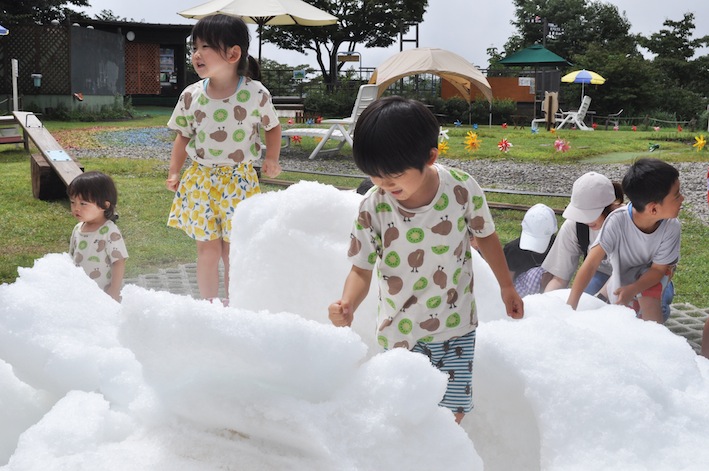 軽井沢プリンスホテルスキー場は8月11日、人工雪で遊べる「雪ふれあいday」を開いた。暑い夏にひ