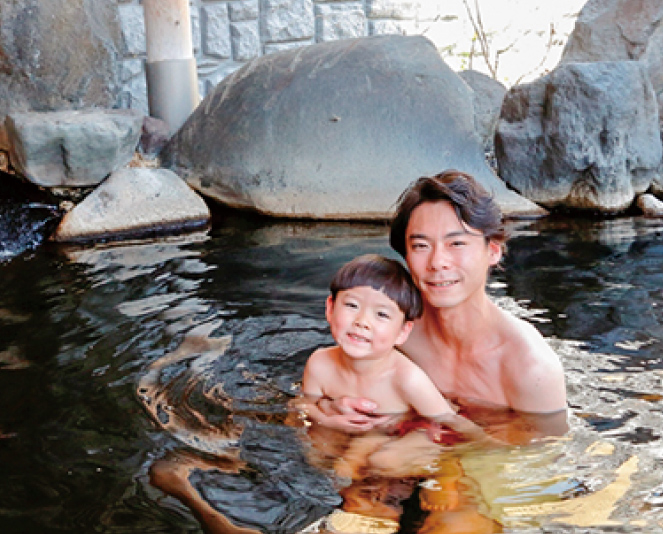 軽井沢おもちゃ王国公式ホテルの天然温泉「暁の湯」。ベビー備品が揃い、ファミリーも歓迎。日帰り入浴もできる。
