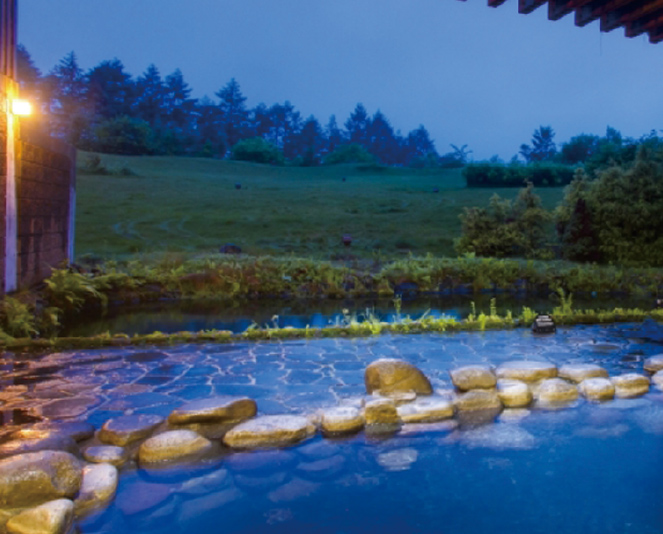 浅間山の大地から湧き出る温泉。眼前に広がる四季折々の景色を眺めながら、ゆったり入れる。リフト券購入者に割引あり。